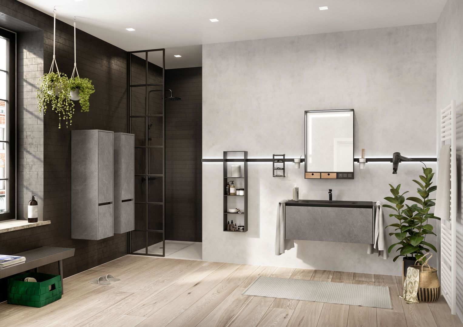 Unterschiedlichste Möglichkeiten prägen hier den Stil und das Ambiente. Hier können Sie Ihrer Kreativität freien Lauf lassen und aus einer breiten Palette wählen: Von Echtholz bis zu großformatigen Fliesen und vom Wandputz bis zu Natursteinen und Glas.