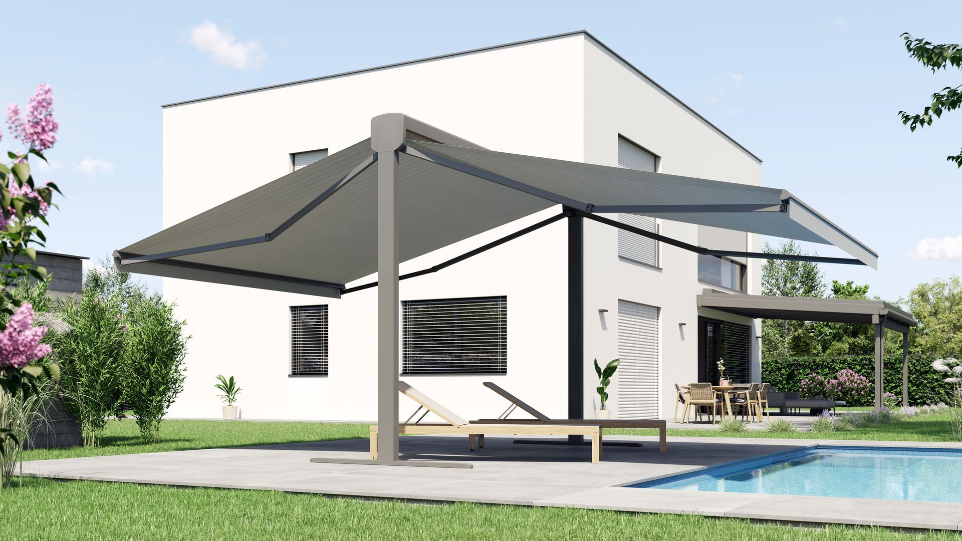 - Freistehende Markisen sind eine sehr gute und vor allem flexiblere Alternative zu Sonnenschirmen und Sonnensegeln, da sie nicht nur punktuell, sondern auch auf großen Flächen Schatten spenden. Häufig kommen sie in Gärten oder als Beschattungselement an Swimmingpools zum Einsatz.