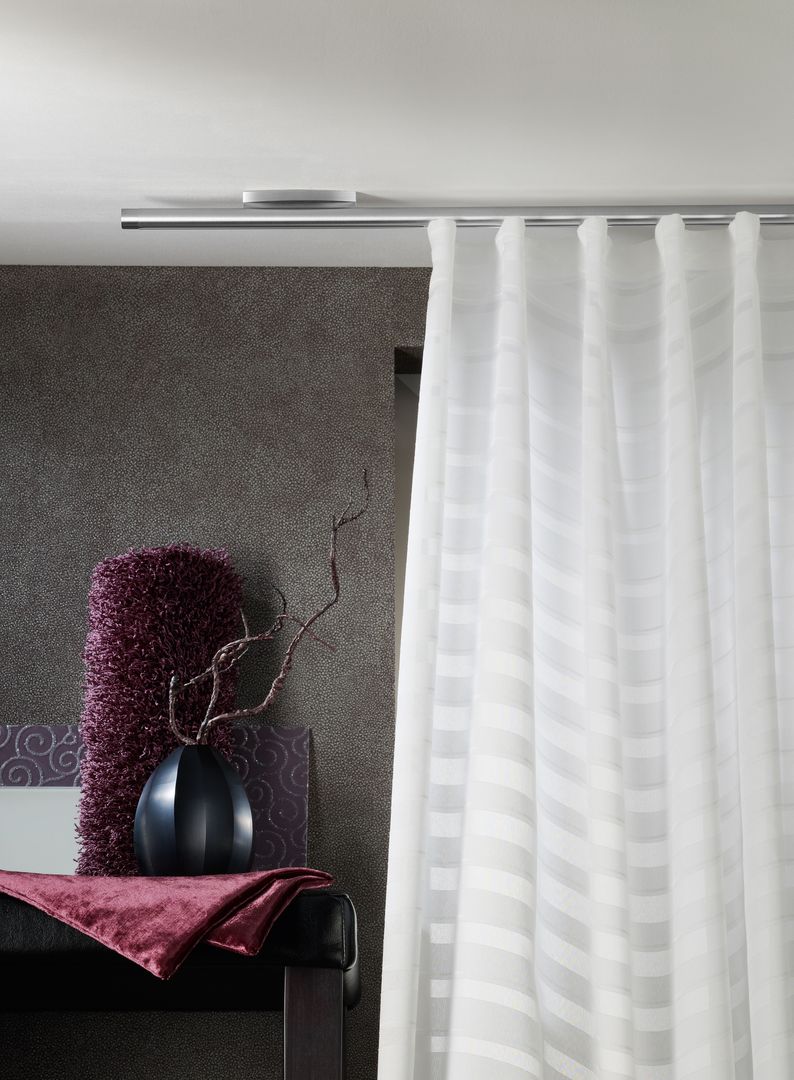 Sie haben eine besonders große und schwere Vorhanganlage in Planung? Dann empfiehlt sich die Variante per Knopfdruck. Auch bekannt als elektrische Vorhänge, sind motorisierte Versionen von Rundstangengarnituren bei schweren Stoffen und großen Vorhanganlagen immer mehr im Vormarsch. Per Funkfernbedienung lassen sich sehr einfach bedienen.